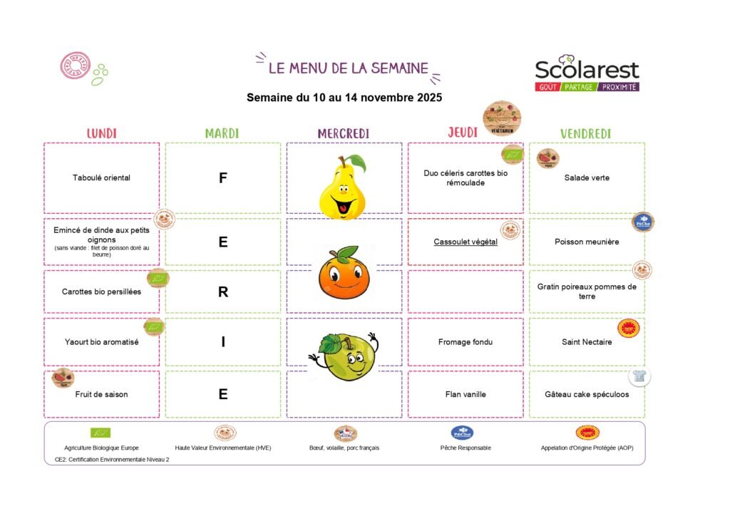 Tarif "panier repas" 2025 - 2026 = 3 €